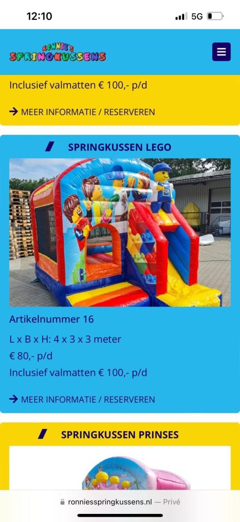 Springkussen wordt gebracht. Prijsjes halen we zelf en versnaperingen ook.