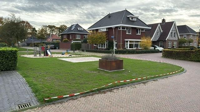 Bij gelegen speeltuintje op terras gerealiseerd in het grasveld.
