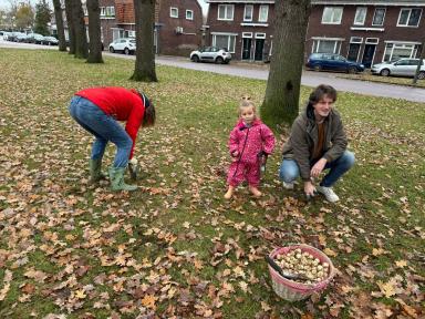 Bloemenbollen planten grasveld tussen Tijhofslaan/Vrielinkslaan