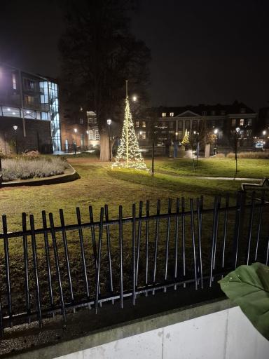 Kerstboom in vlaggenmast gezamenlijk stadstuin