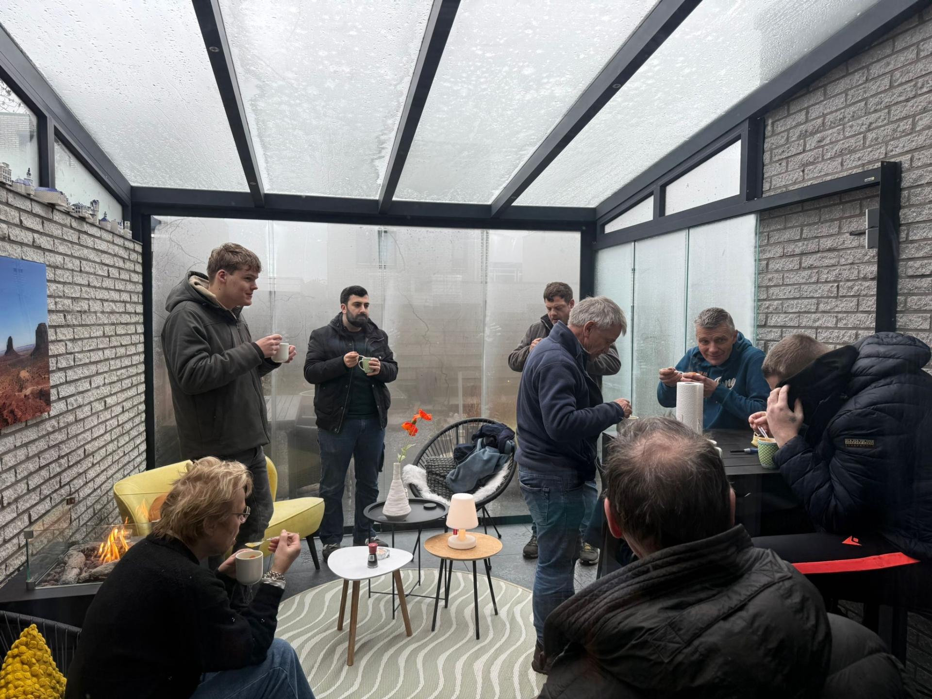 Rond lunch tijd nog een pauze voor wat snert en heerlijke turkse broodjes en aan het eind van de middag was alles klaar. De buren hadden weer lekker bijgekletst en voor meer dan een maand is er weer volop genoten van de kerstboom!