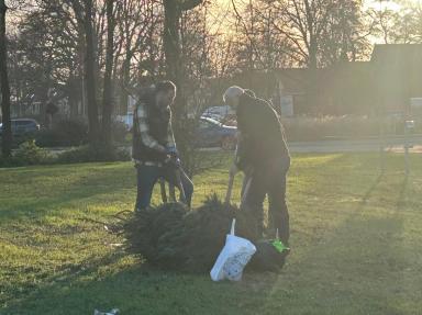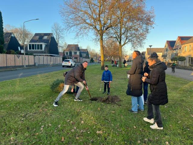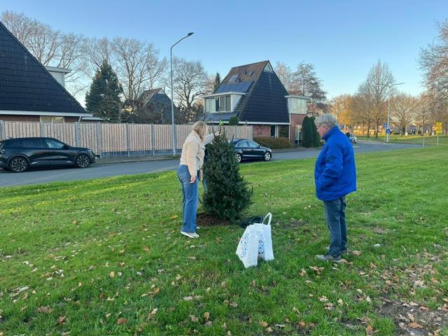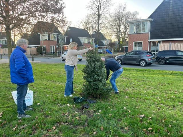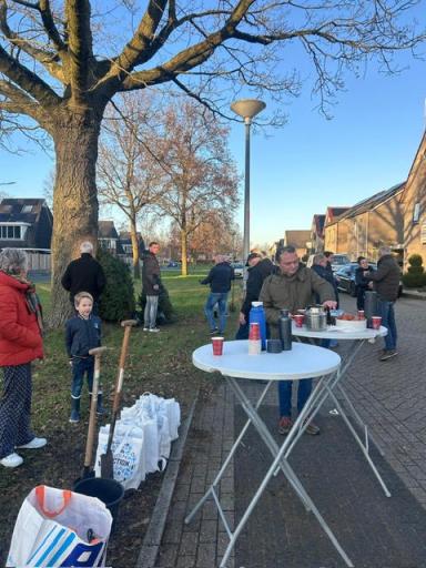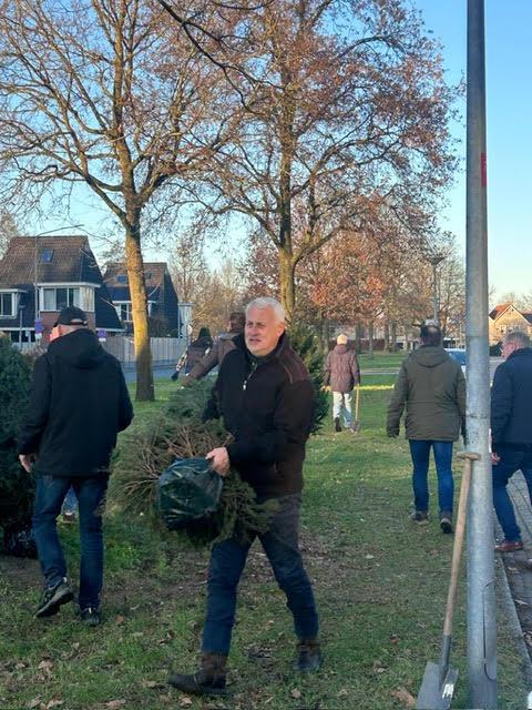 Om 15.00 uur gingen we van start met eerst een kopje koffie of chocolademelk. Daarna gingen we in groepjes aan het werk om alle 7 kerstbomen te planten en te voorzien van kerstverlichting. Een hele gezellige middag waarbij de buurtbewoners van de Specht , de Wiekslagen en de Sperwer elkaar nog beter hebben leren kennen. Er zijn al weer nieuwe ideeën ontstaan voor volgend jaar.