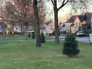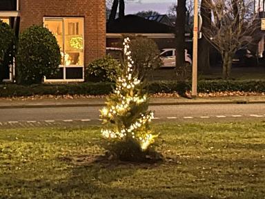Kerstversiering in de groenstrook tussen De Specht en de Wiekslagen