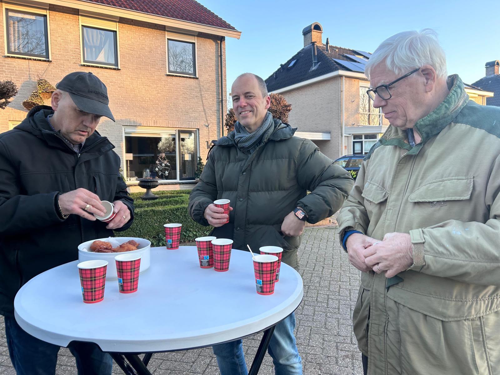 Ondertussen werden de eerste oliebollen gebakken voor die middag, de statafels klaargezet met koffie en warme chocolademelk.