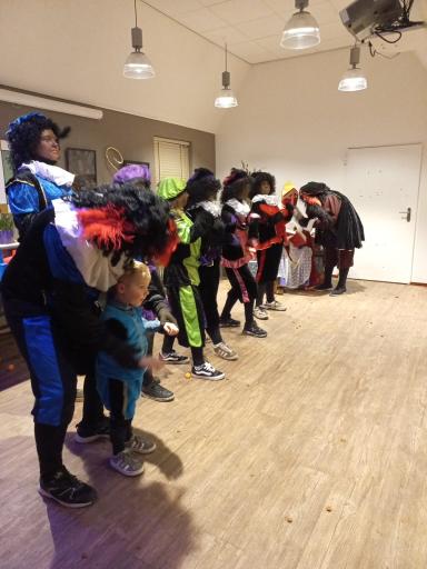 Ze werden daarbij geholpen en aangemoedigd door onze hulppieten. Ook hebben de kinderen samen met de pieten gedanst. Tijdens het spelen werd volop gesmuld van de lekkere pepernoten van Bolletje. De kinderen, maar ook de ouders genoten hier zichtbaar van.